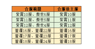 1. 玩家重名:合服相連的伺服器,如有玩家重複名字(重名玩家自動名字前加伺服器,郵件贈送改名卡[不限時])