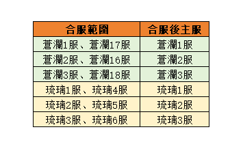 1. 玩家重名:合服相連的伺服器,如有玩家重複名字(重名玩家自動名字前加伺服器,郵件贈送改名卡[不限時])